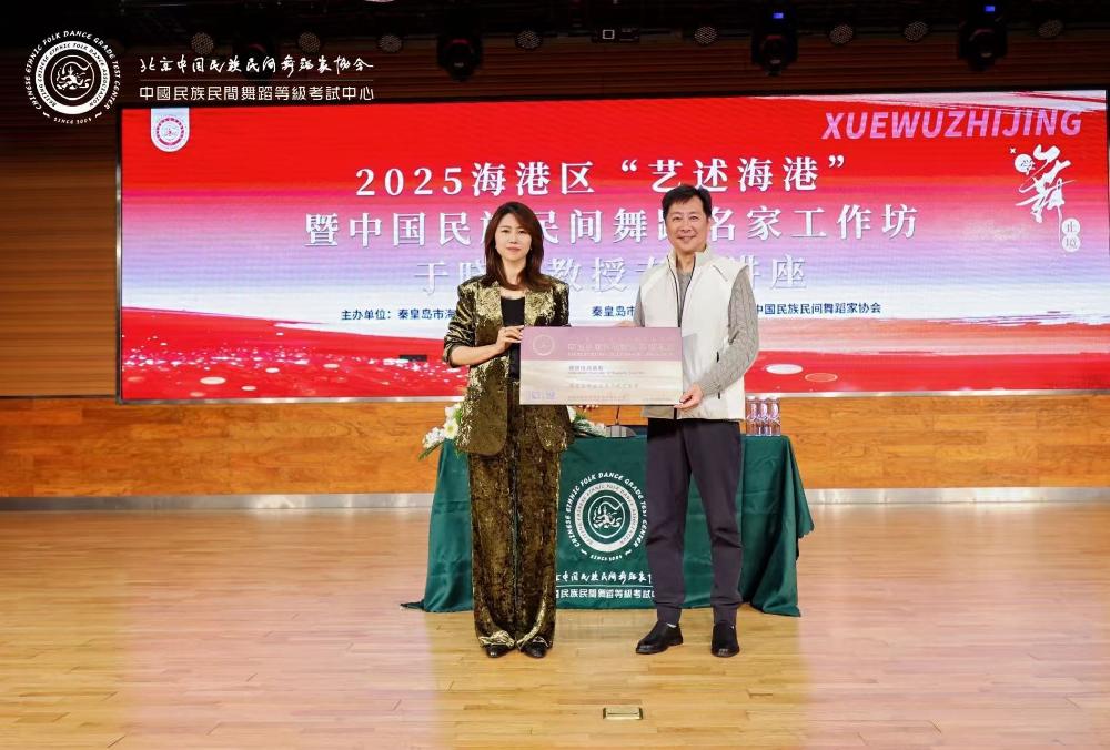 为深化产教融合,推动民族民间舞蹈艺术的传承与创新。4月21日,学院艺术系与北京中国民族民间舞蹈家协会暨中国民族民间舞蹈考级中心正式达成战略合作,并举行“课程共建暨师资培训基地”授牌仪式。国家一级演员、跨世纪中国舞蹈家、北京舞蹈学院教育学院舞蹈实践教研室主任、硕士生导师、北京中国民族民间舞蹈家协会会长于晓雪亲临现场授牌。