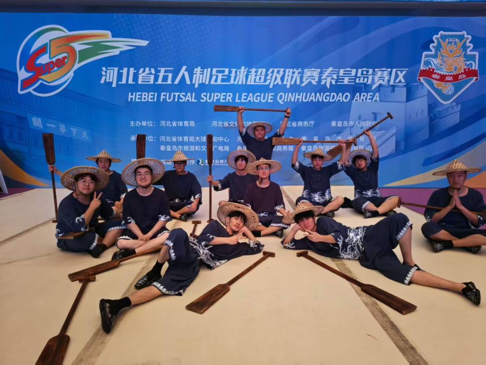 开幕式上,艺术系音乐表演专业13名同学与非遗传承大师同台演绎了北戴河渔歌号子《搬浆号子》。师生们整齐划一充满激情的表演,将《搬浆号子》的豪迈与坚韧展现得淋漓尽致。那激昂的号子声仿佛带领现场观众回到了波涛汹涌的渔船上,感受到渔民们齐心协力、战胜风浪的勇气和决心。表演结束后,现场的领导和球迷们纷纷起立鼓掌,对他们的精彩演出表示高度赞赏。