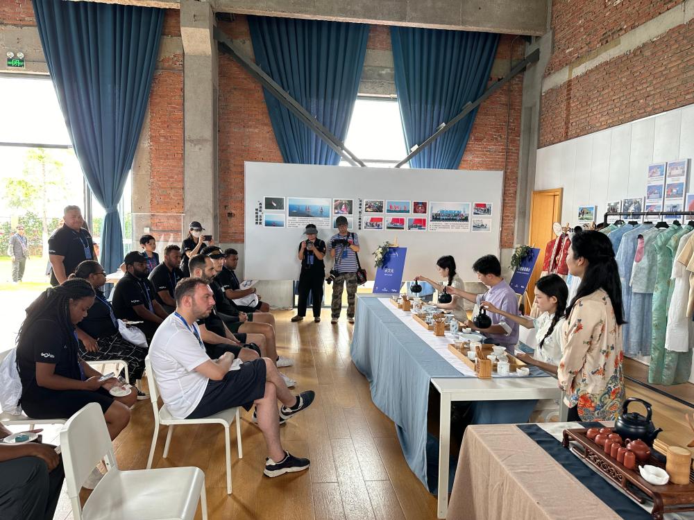 活动中,茶艺社团的同学们表演展示了盖碗冲泡、紫砂壶冲泡、玻璃杯冲泡和仿宋代点茶四项内容。陶艳红向外宾详细介绍了中国茶文化的历史、特点、冲泡技巧和茶礼,外宾饶有兴致的品鉴了绿茶、红茶等品类,体验了点茶和茶膏画,感受了中华茶艺文化的魅力,对学院师生茶艺技能的精彩展示和对茶文化的传承精神给予赞赏肯定。