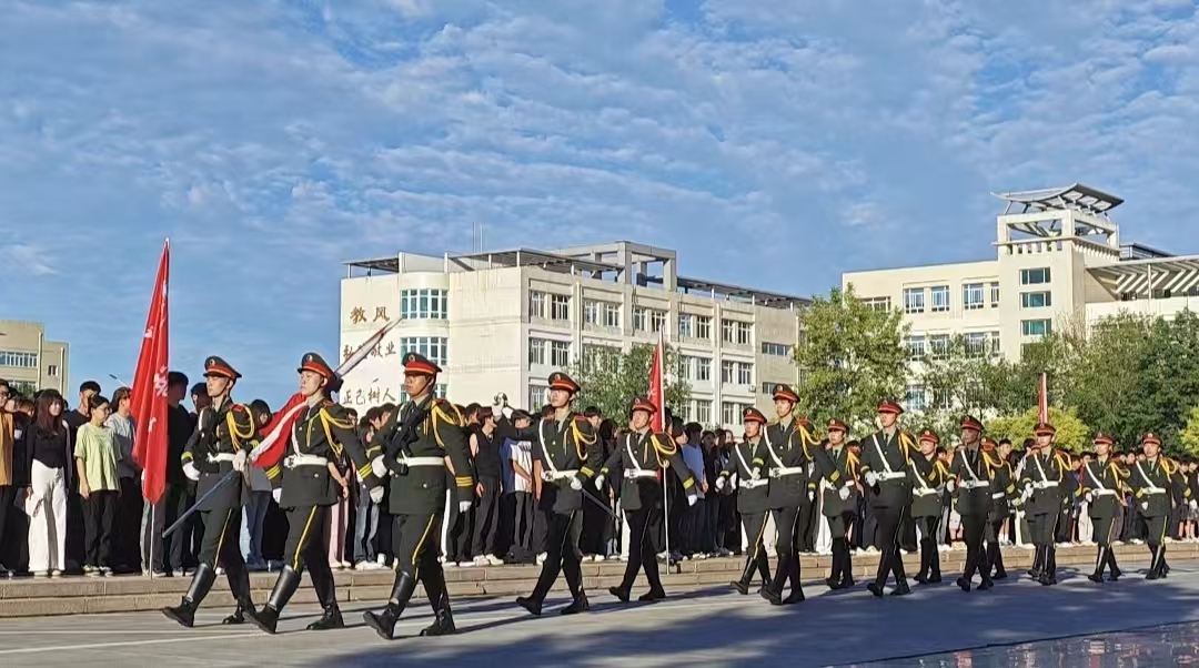 【新闻中心讯】9月2日早7时,学院2024年秋季学期升国旗仪式在图书馆前举行。学生工作处处长赵建军、团委副书记杨丹、各团总支书记及全体在校生参加活动。