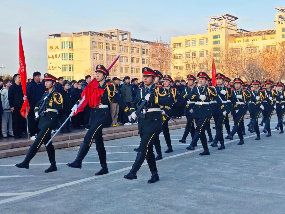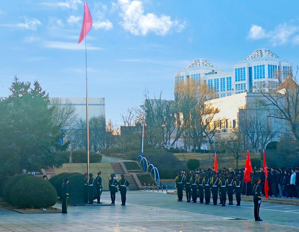 【新闻中心讯】3月3日,学院在图书馆前广场举行2024-2025学年第二学期开学升国旗仪式。学生工作处处长赵建军、团委副书记杨丹、各团总支书记及全体2024级学生参加活动。
