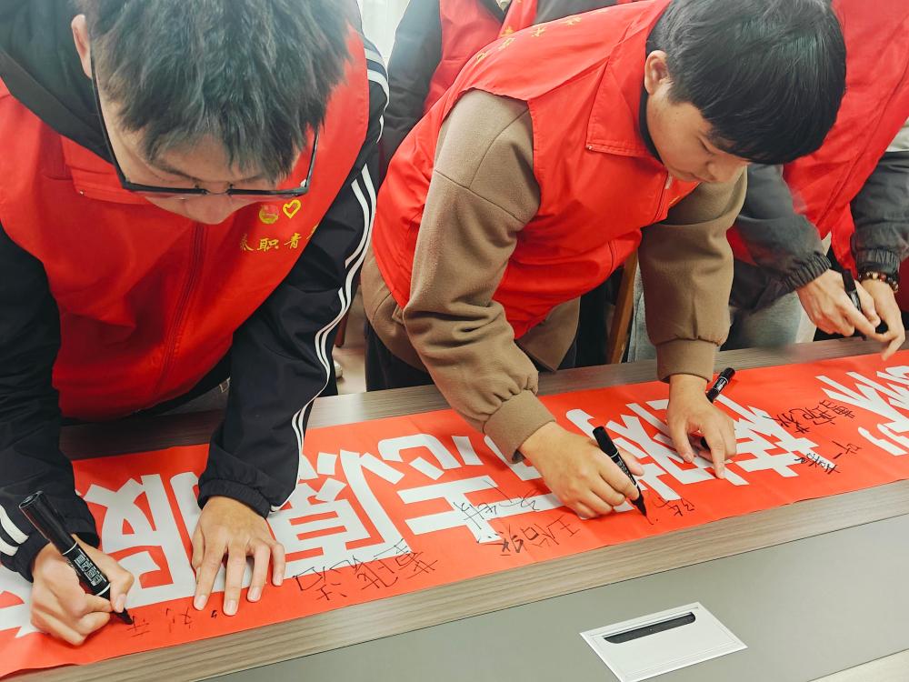 在志愿者林旁,一条醒目的环保承诺横幅吸引师生驻足。志愿者们写下对生态保护的寄语,并邀请过往师生共同参与。大家分工协作,对学院“青年志愿林”开展养护行动,清理林区杂草、修剪枯枝、培土浇水。