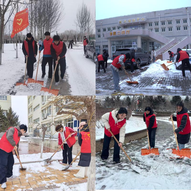 今日降雪,校园路面、台阶、坡道等区域出现积雪,给师生出行带来安全隐患。在学院团委指导、青年志愿者协会统筹协调下,来自八个系的500余名志愿者迅速行动、分工协作,手持扫雪工具,各系志愿者协同发力、密切配合,重点清扫校园内易滑区域,不畏严寒、埋头实干,全力保障师生出行安全,充分展现了各系青年志愿者的责任与担当。