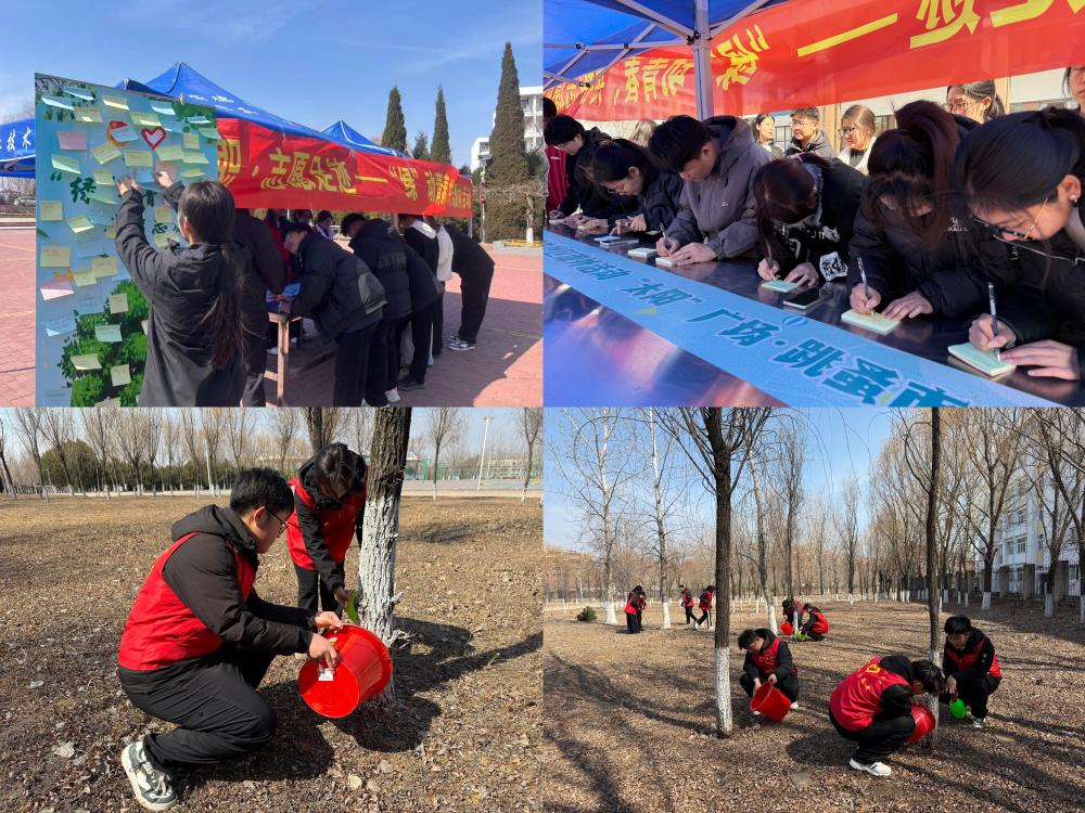 活动伊始,青年志愿者协会组织各系青年志愿者代表集中学习环保知识,深刻领悟“绿水青山就是金山银山”的发展理念。随后,主题宣讲在太阳广场展开,秦职青年宣讲团成员向过往同学讲述植树节由来,普及绿色环保知识,并邀请大家在便利贴上写下生活中的环保承诺:“光盘行动”“节约用纸”“垃圾分类”……一条条朴素的倡议,汇聚成守护绿色的青春誓言。