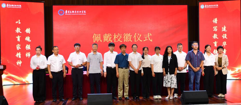 骨干教师代表为新入职教师佩戴校徽