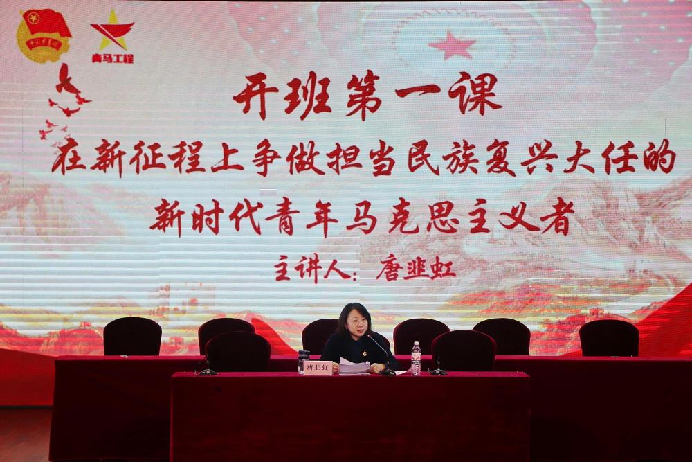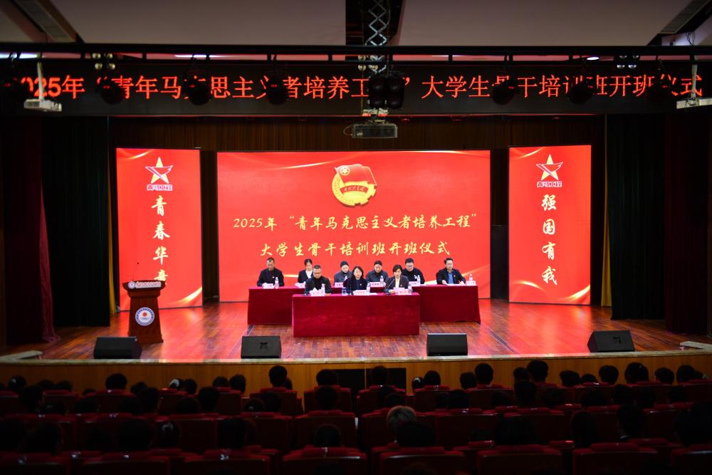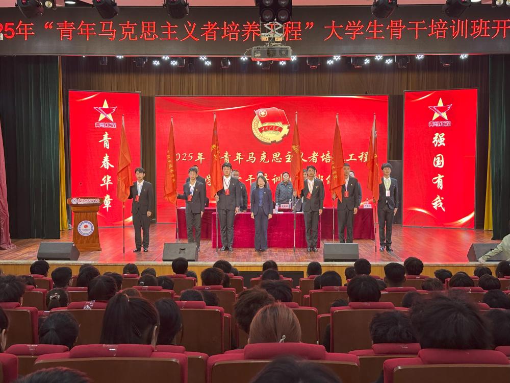 开班式上,唐韭虹为2025年“青年马克思主义者培养工程”大学生骨干培训班授旗,新学员代表、往届学员代表作分享发言。唐韭虹以《在新征程上争做担当民族复兴大任的新时代青年马克思主义者》为题,结合学院往届优秀毕业生的个人成长事迹和新时代大学生的青春使命,围绕“信仰”“本领”“担当”三个关键词,从“铸魂立心把握时代方位”“强能立身筑牢担当之基”“笃行立责书写青春答卷”三个维度为学员们深刻阐释了新时代青年马克思主义者的成长路径。