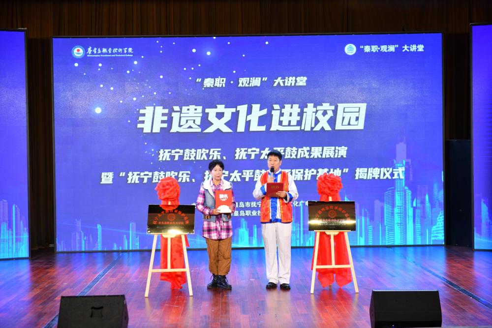 活动伊始,刘彦广、吕健伟、单勇、学院教务处处长张志宇分别为抚宁鼓吹乐、抚宁太平鼓传承保护基地揭牌。艺术系党支部书记孙永林为国家级非物质文化遗产项目抚宁鼓吹乐省级传承人董连吉、河北省非物质文化遗产项目抚宁太平鼓省级传承人韩运会颁发聘书。
