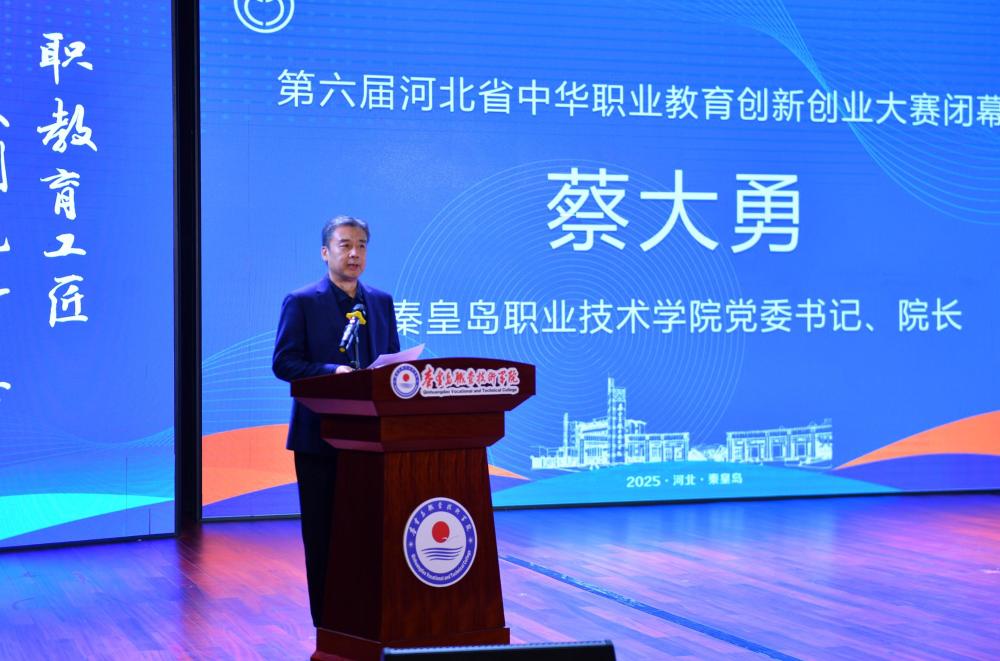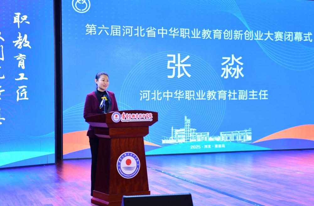 【新闻中心讯】11月18日,第六届河北省中华职业教育创新创业大赛在学院圆满落幕。大赛由河北中华职业教育社、河北省教育厅、河北省人力资源和社会保障厅主办,学院承办。河北省中华职教社专职副主任兼秘书长孟拥军,省委统战部党派处处长、省中华职教社副主任张淼,省教育厅二级巡视员魏锡政,省人社厅职业能力建设处三级调研员李金宝,秦皇岛市委统战部二级调研员谢海梅,市教育局四级调研员刘燕明,学院党委书记、院长蔡大勇,副院长唐韭虹出席闭幕式。