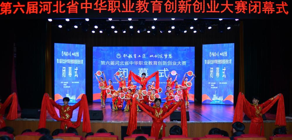 闭幕式上,学院河北省非物质文化遗产代表性项目抚宁太平鼓和北戴河渔歌号子进行了展演,3个优秀项目作品现场展示,省、市相关部门领导分别为获奖团队颁奖。蔡大勇在致辞中指出,赛事聚焦新质生产力与区域发展需求,涌现出一批技术领先、创意独特的优秀项目,展现出职业教育的创新活力,更彰显了新时代青年服务国家战略的担当与智慧。张淼在讲话中指出,同学们在比赛中展现出的创新思维、实践能力和团队精神,充分体现了我省职业教育的丰硕成果,彰显了新时代技术技能人才培养的显著成效。希望同学们牢记习近平总书记的殷切嘱托,立志成为爱党报国、敬业奉献、技艺精湛、素质优良的高素质技术技能人才。