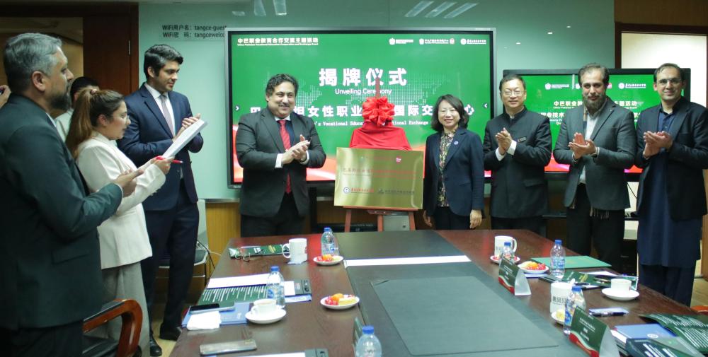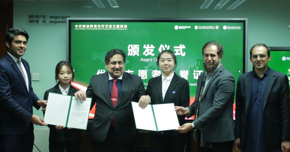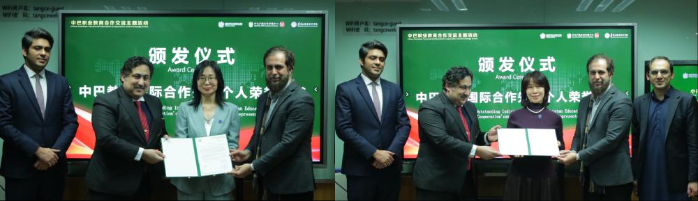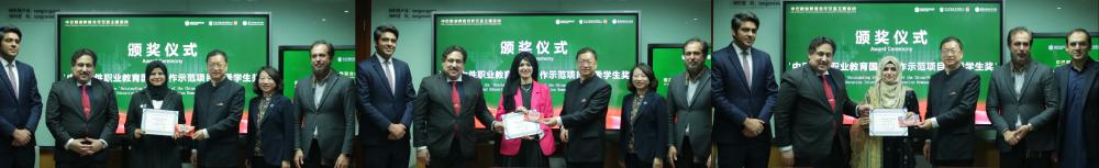 典礼上,还举行了巴基斯坦女性职业教育国际交流中心揭牌仪式。学院2名教师被授予“中巴教育国际合作先进个人”,2名志愿者被授予“中巴教育国际合作优秀志愿者”。