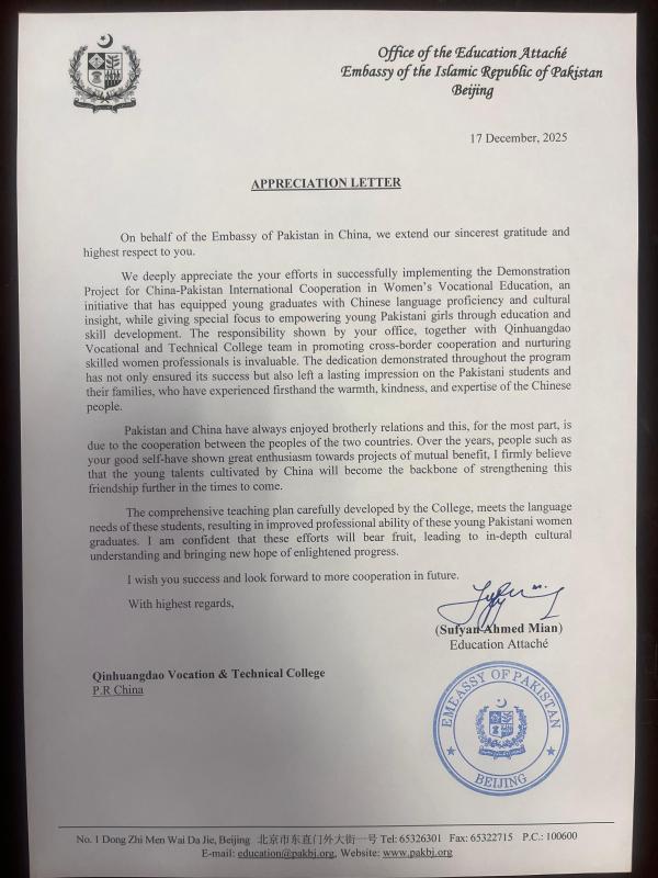 此次首批巴基斯坦女性留学生的圆满结业,是学院国际化办学能力的集中彰显,更是学院服务“一带一路”倡议、推进中巴产教融合的生动实践。