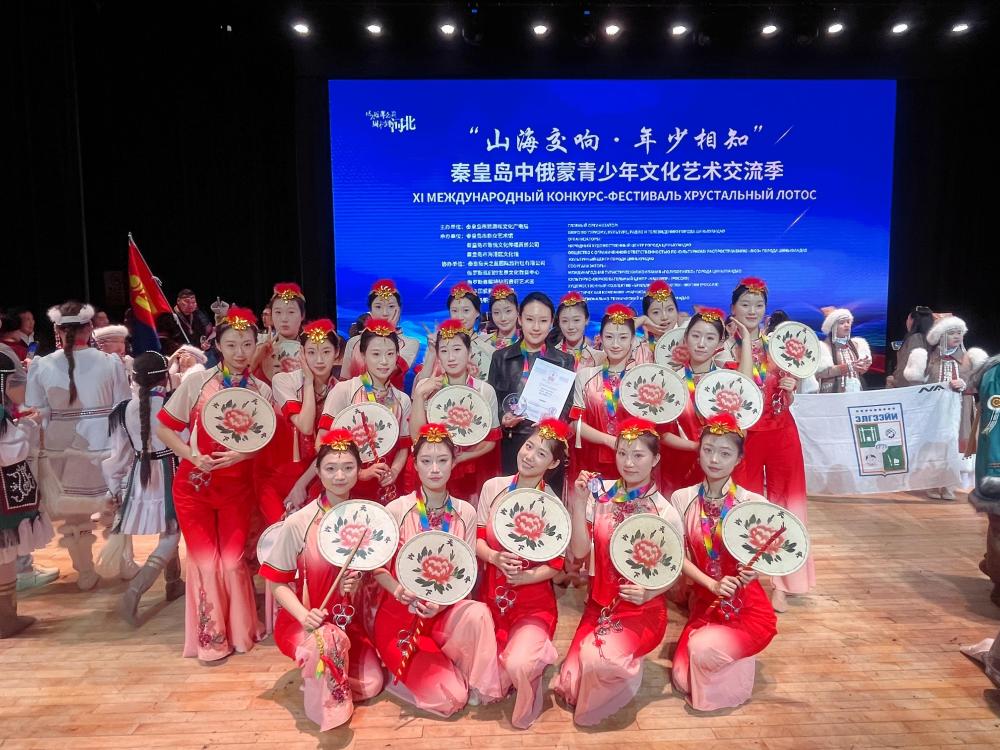 【新闻中心讯】近日,由秦皇岛市旅游和文化广电局主办、学院协办的“山海交响・年少相知”第十一届秦皇岛中俄蒙青少年文化艺术交流季在市文化中心举办。作为中方高校代表,学院艺术系师生携原创非遗舞蹈精品《耍鼓的丫头》精彩登台,以青春舞姿演绎非遗古韵,以文化交流搭建友谊桥梁,充分展现了学院在艺术教育国际化、非遗活态传承、服务地方发展及对外文化交流中的突出成果与责任担当。