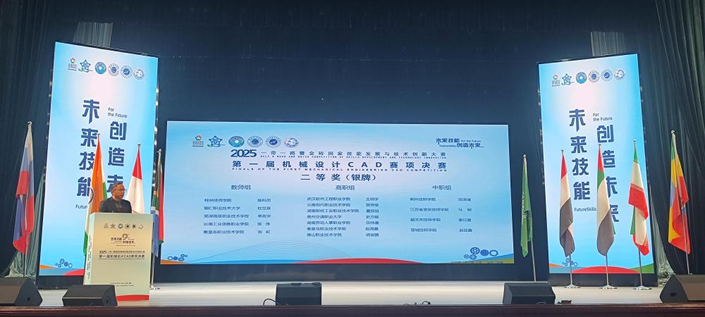 【新闻中心讯】11月19日,2025“一带一路”暨金砖国家技能发展与技术创新大赛——第一届机械设计CAD赛项决赛在云南现代职业技术学院成功举办。学院机电工程系教师张虹荣获教师组银牌,学生赵海鑫斩获高职组银牌,实现“师生同台,双双夺银”。学院荣获大赛“最佳组织奖”。