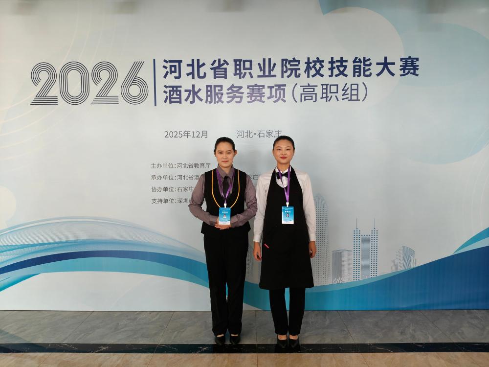 【新闻中心讯】12月27日,2026年河北省职业院校技能大赛酒水服务赛项(高职组)圆满落幕。学院旅游与康养系韩奕梦、赵紫涵两位同学获三等奖。