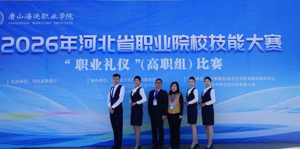 【新闻中心讯】1月10日至11日,2026年河北省职业院校职业礼仪(高职组)赛项在唐山海运职业学院举办,学院旅游与康养系岳欣蕊、杨超杰、王艺霏、陈宇萌团队获得二等奖。