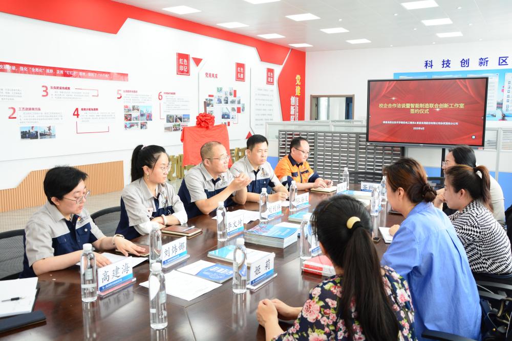 会上,马思介绍了学院工会和学院市级创新工作室创建情况;刘利祥就公司党建引领下的创新工作室建设,分别从公司的党建理念、公司“三合一”创新工作室建设总体情况进行了详细介绍;马薇介绍了机电工程系和3个创新工作室建设及运行现状;张海波介绍了公司国家级劳动创新工作室及技能大师工作室的情况。随后,双方代表共同签订了合作协议,并为“智能制造联合创新工作室”揭牌。