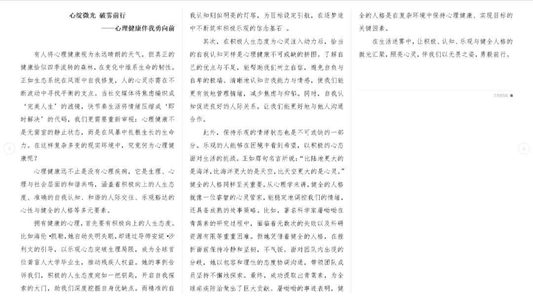 发布时间:2025-04-07在这个春意盎然、生机勃发的三月,我们怀着对心灵的关怀与对成长的期待,成功举办了"心理健康伴我行"主题征文活动。这场充满温度的文字盛宴,犹如三月和煦的春风,轻柔地拂过每个人的心田,唤起了大家对心理健康的关注与思考。