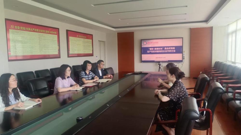 2025年9月12日,旅游与康养系携手秦皇岛原麦时光食品科技有限公司,在学院行政会议室成功举办"秦职·原麦时光"混合所有制生产性实训基地校企合作研讨会。学院副院长吕健伟、秦皇岛原麦时光食品科技有限公司总经理周紫娟一行三人,以及旅游与康养系主任高媛、副主任李翠霞、校企合作办公室主任李孟冬出席会议。