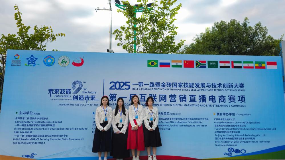 10月25日,2025一带一路暨金砖国家技能发展与技术创新大赛之第一届互联网营销直播电商赛项全国总决赛圆满落幕。学院电子商务专业代表队荣获全国总决赛二等奖,学院获得优秀组织奖。