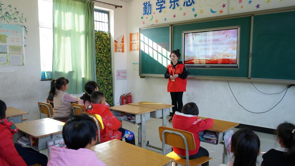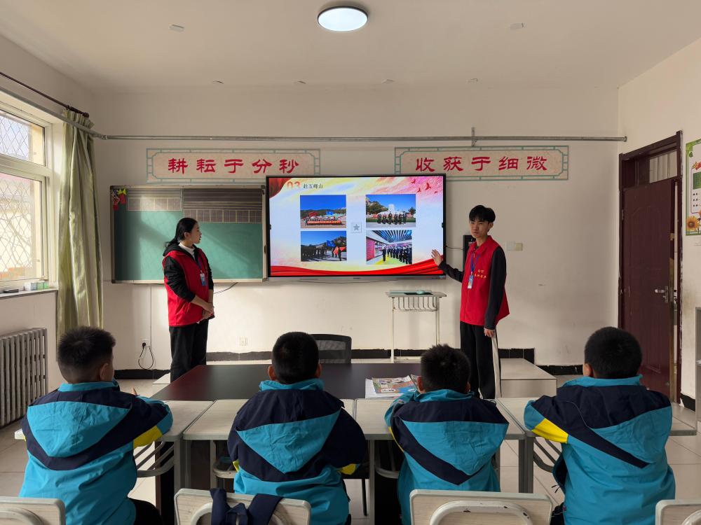 【新闻中心讯】11月24日和11月27日,学院2024年“青马工程”大学生骨干培训班学员代表组成的青年宣讲团成员先后走进花厂峪村小学、祖山镇柏树村小学开展“探寻红色足迹 传承革命精神”主题宣讲,通过理论宣讲与社会实践,将在培训班的学习所得传递给乡村小学的孩子们。