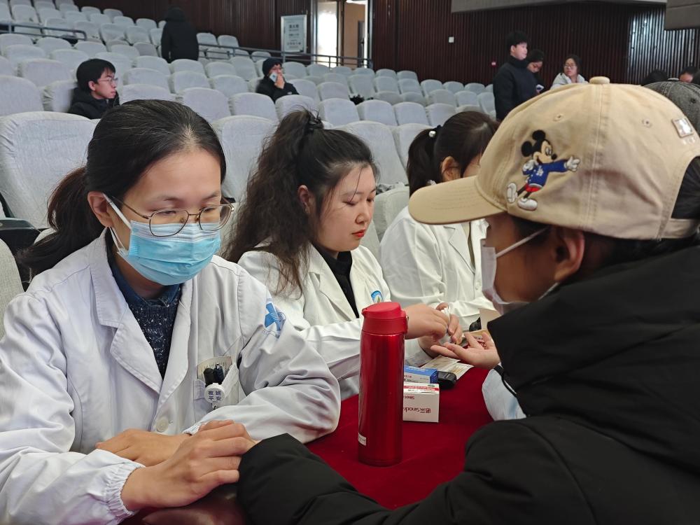 讲座后,海港医院神经内科、中医科、骨科、心理咨询科等科室的医生用带来的彩超机、心电图机、血糖仪、血压计等医用设备,为到场大学生进行免费义诊。