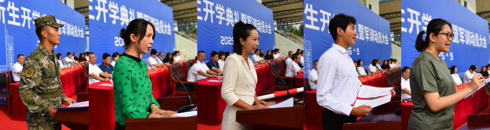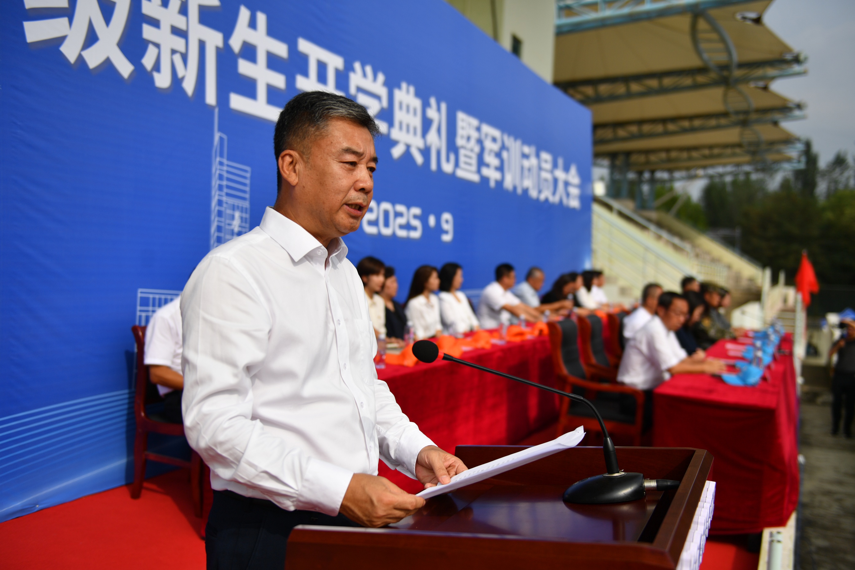 会上,蔡大勇为2025级新生军训团授旗。承训部队教官代表王宇、教师代表商贸系张锦、优秀校友代表孙嘉琪、在校生代表外语系郭成、新生代表经济系李艺函先后发言。