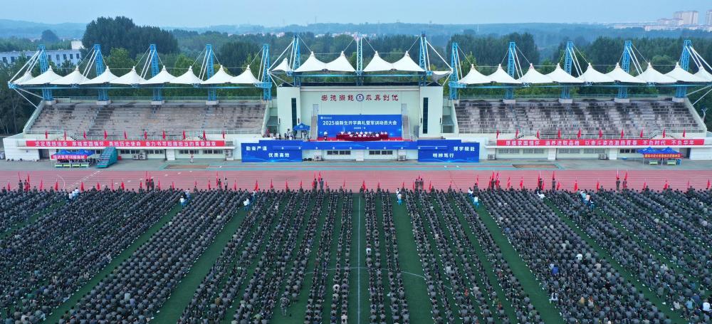 9月16日,学院2025级新生开学典礼暨军训动员大会在田径运动场举行。学院党委书记、院长蔡大勇,党委副书记高永林,副院长吕健伟,纪委书记周贤发,副院长殷建兵,承接军训部队领导和全体教官,学院各职能处室、系部负责人,教师和学生代表齐聚一堂,共同见证4266名莘莘学子与秦职的双向奔赴。大会由副院长唐韭虹主持。
