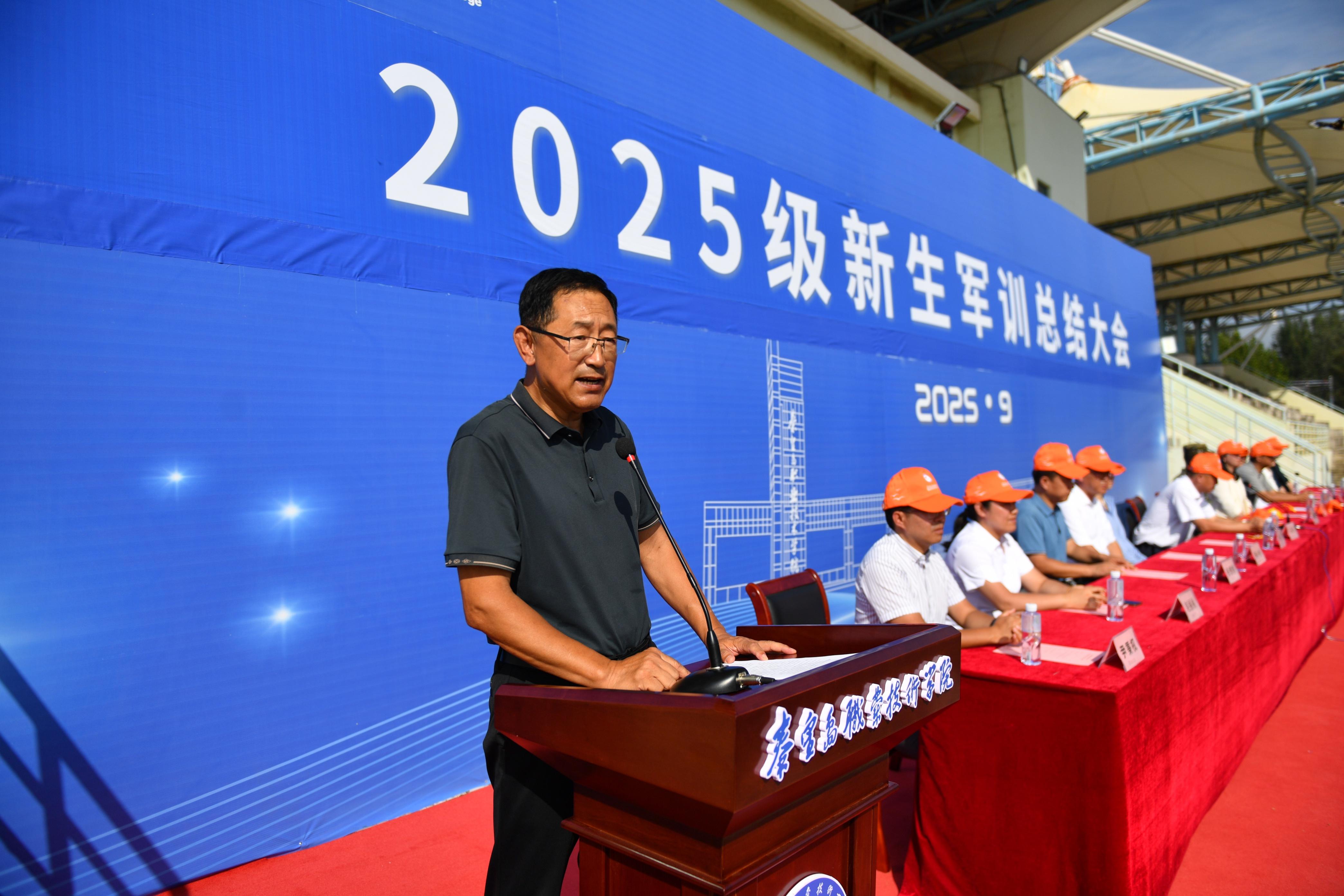 学生工作处处长赵建军在总结中高度肯定了新生在军训中展现的顽强拼搏精神,对学管教师、军训教官的辛勤付出表示崇高敬意,并勉励全体新生将军训中锤炼的优良作风融入大学生活,努力成长为高素质技能人才。