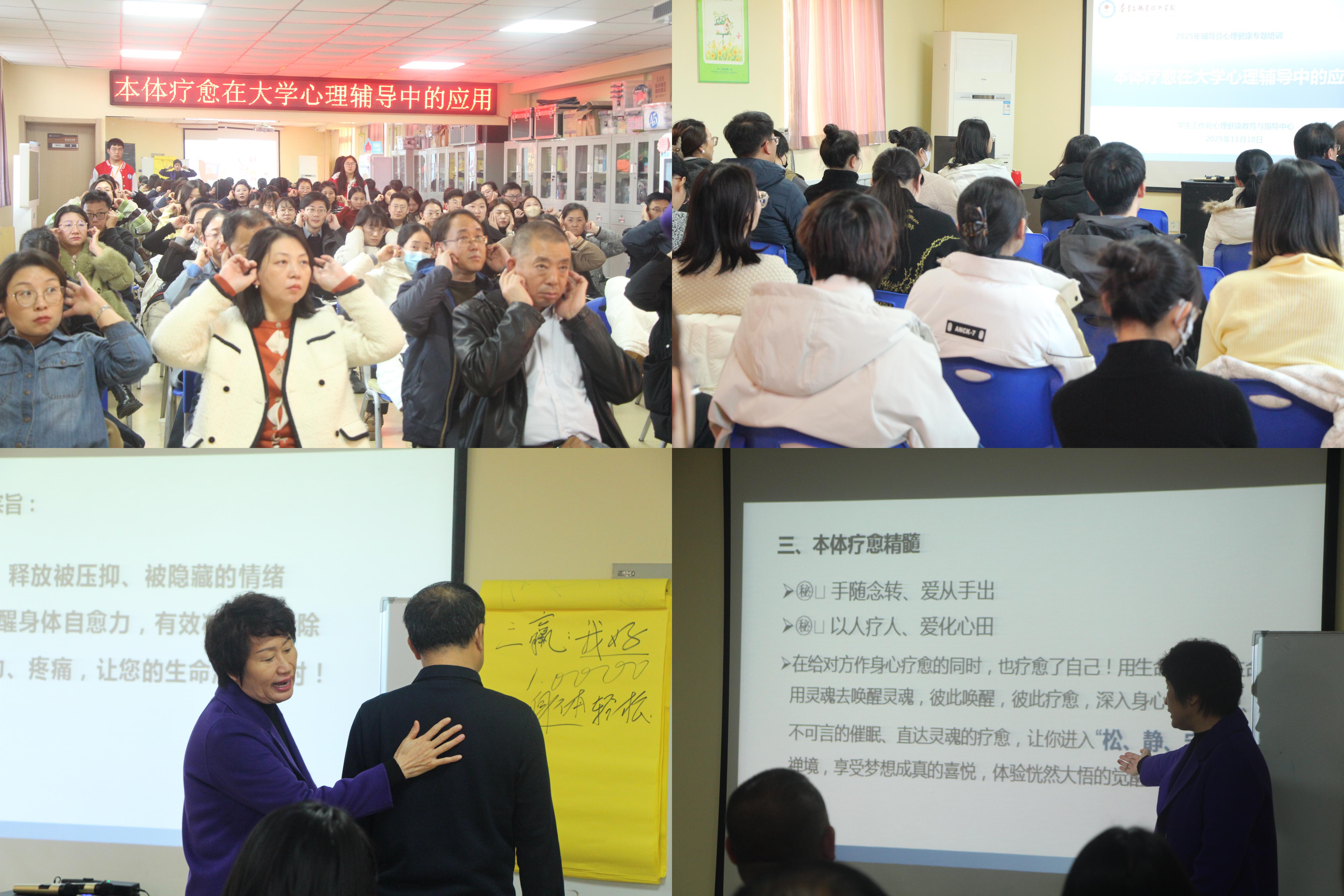 于淑梅聚焦《本体疗愈在大学心理辅导中的应用》主题,系统讲解了本体疗愈的理论与技术。培训中,她通过身体放松、团体互动体验、深度冥想等方式,引导教师在体验中深化对身心联结的理解,掌握唤醒身体自愈能力、释放情绪的方法,最终实现自我关怀意识与心理疏导能力的双重提升。