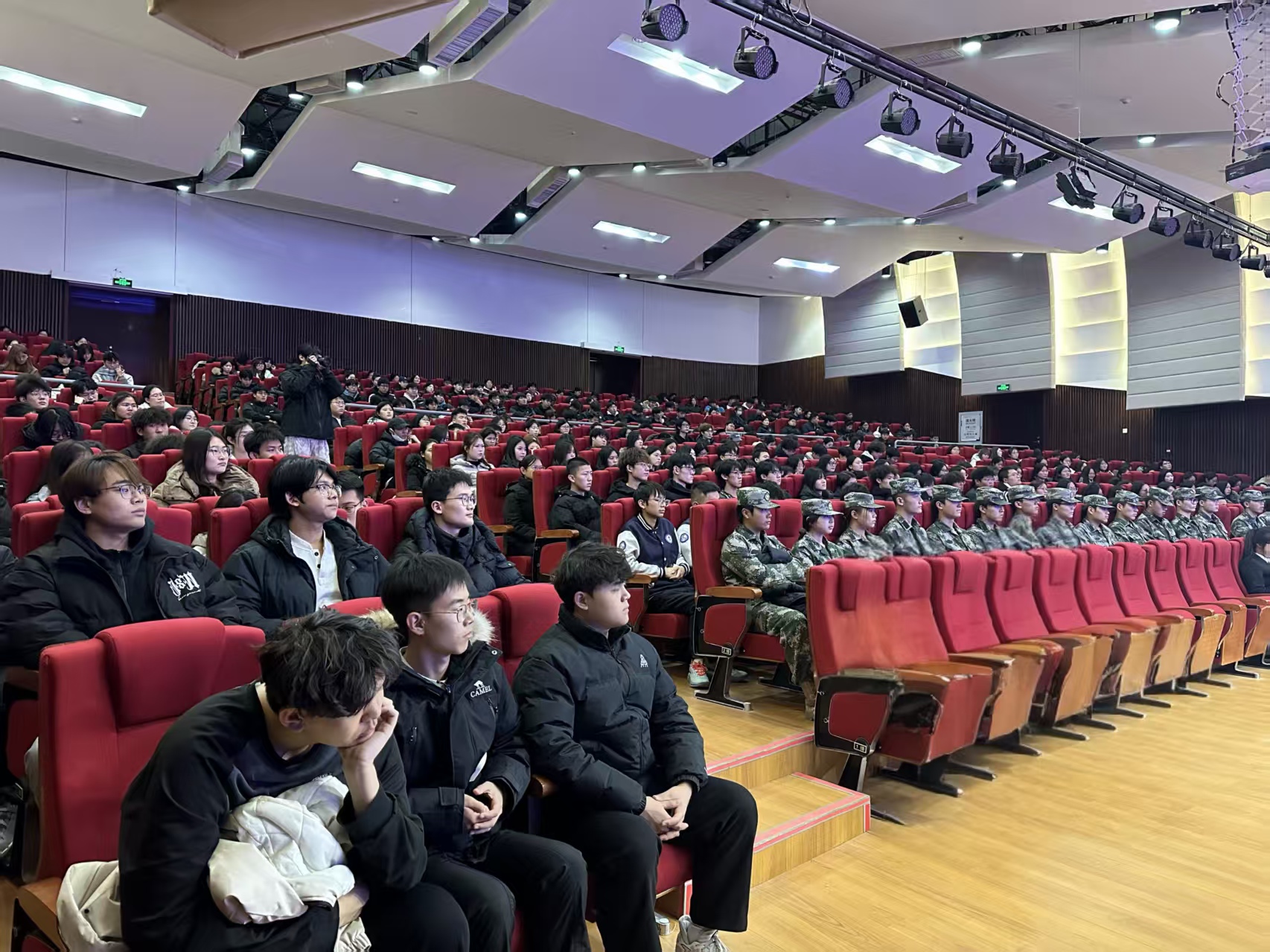 发布时间:2025-11-2611月25日,学院在报告厅举行国家奖学金获得者事迹宣讲会。学生工作处相关负责人与各系500余名学生干部代表共同参会。