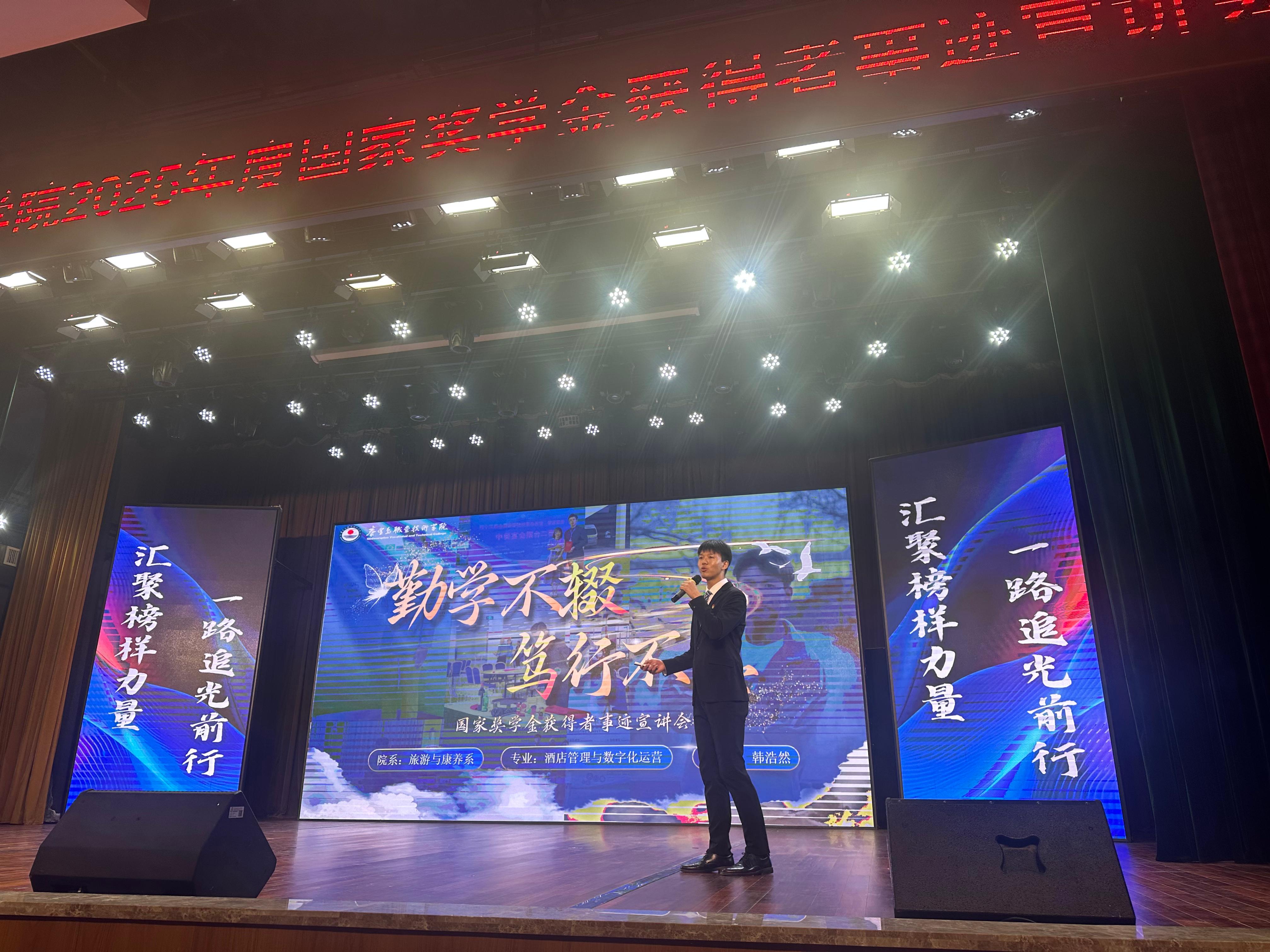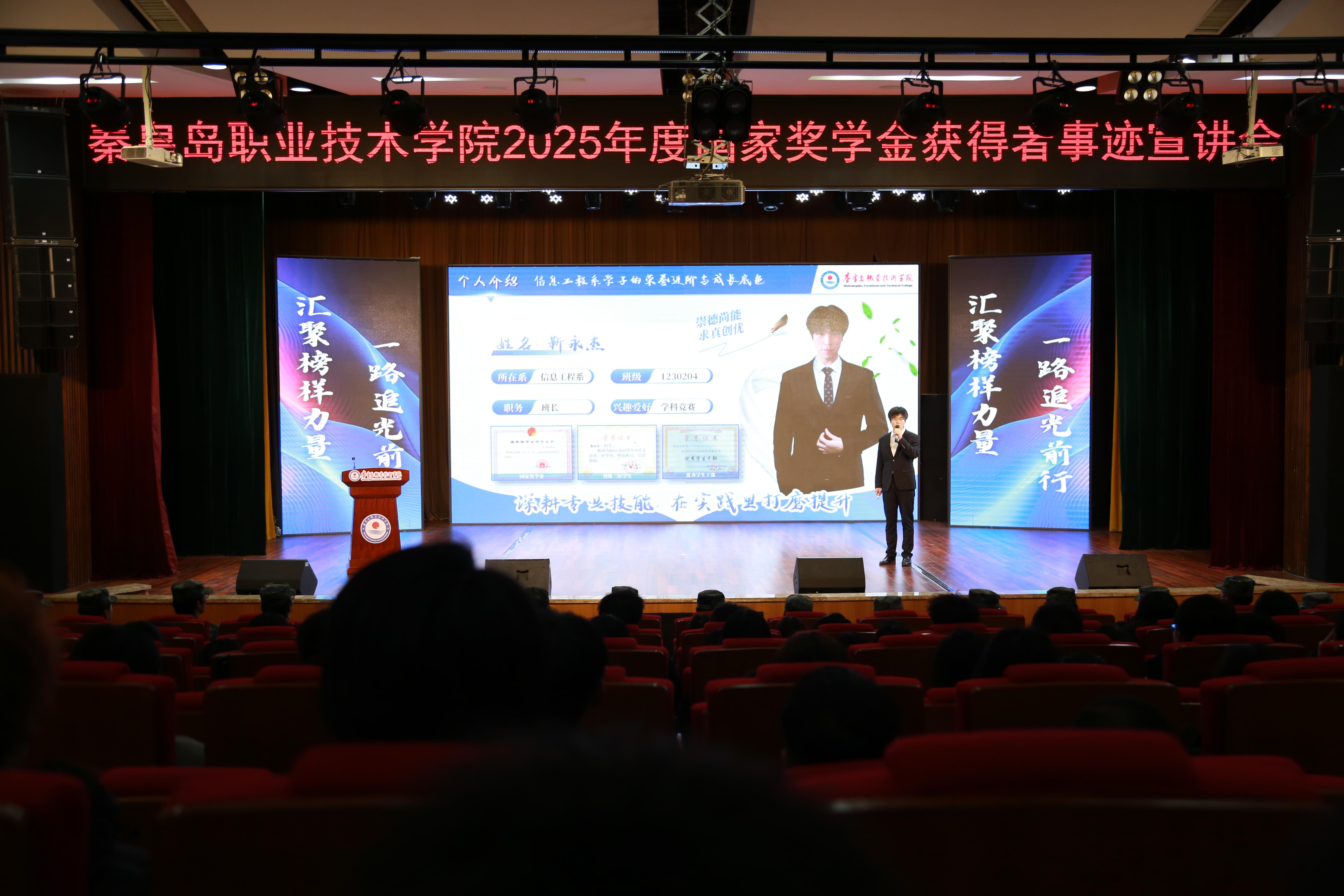 会上,8位国家奖学金获得者结合大学学习生活的真实经历,围绕专业课程学习、综合能力提升、发展方向选择等方面,分享了各自的成长历程。他们从学业深耕、竞赛突破、社会实践、志愿服务以及个人成长等多个维度,倾情传授经验、提供实用方法,以青年视角和青春语言,生动诠释了新时代秦职学子“立大志、明大德、成大才、担大任”的追求与担当。他们的分享朴实真切、感人至深,现场不时爆发出热烈的掌声。