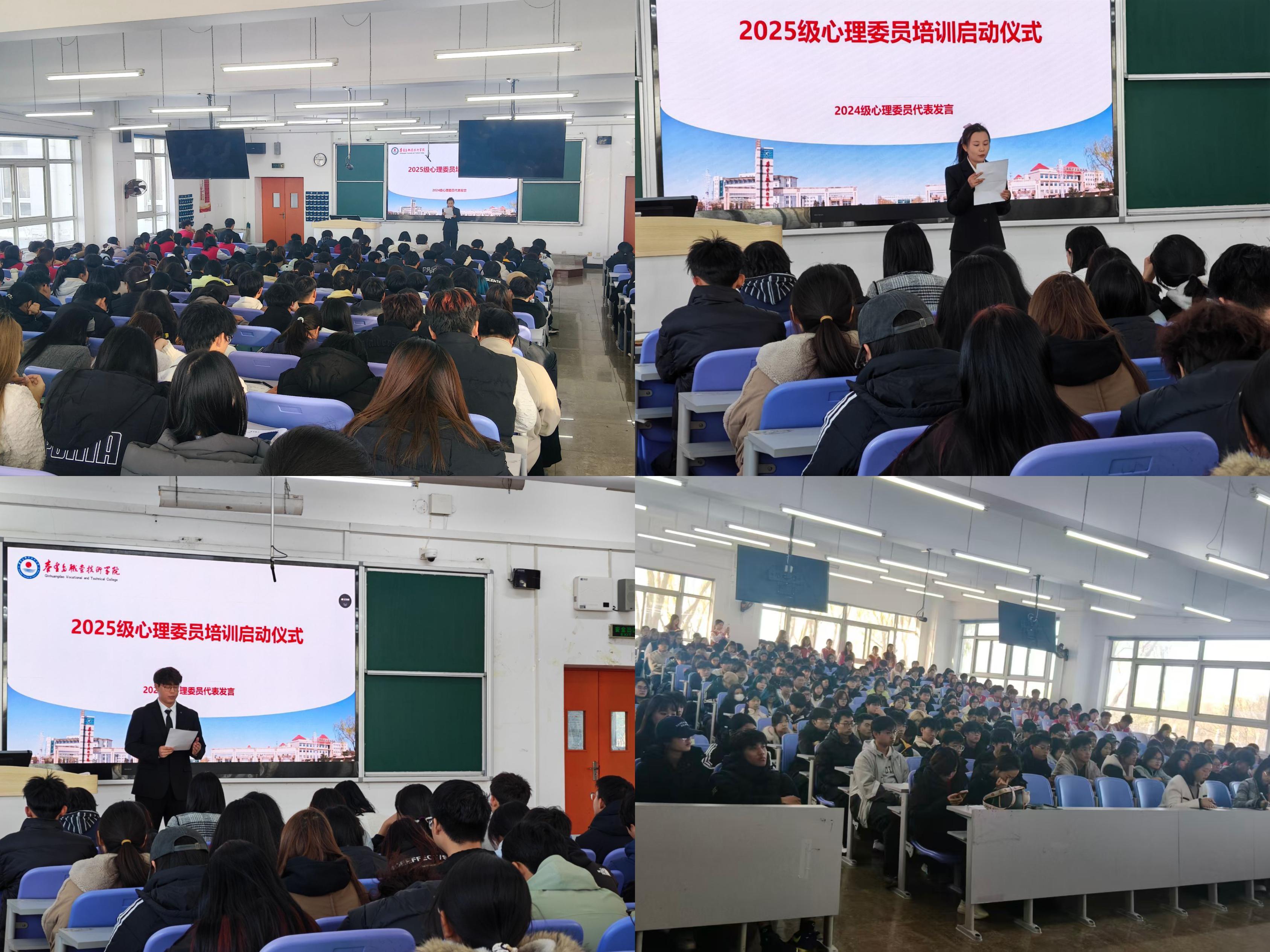 11月25日,学生工作处心理健康教育与指导中心在2105教室进行2025级班级心理委员培训。学生工作处副处长荣新艳、专兼职心理教师、各系心理健康服务站站长、院系心协负责人、2025级班级心理委员近300人参加,培训由心理健康教育与指导中心主任胡铂主讲。