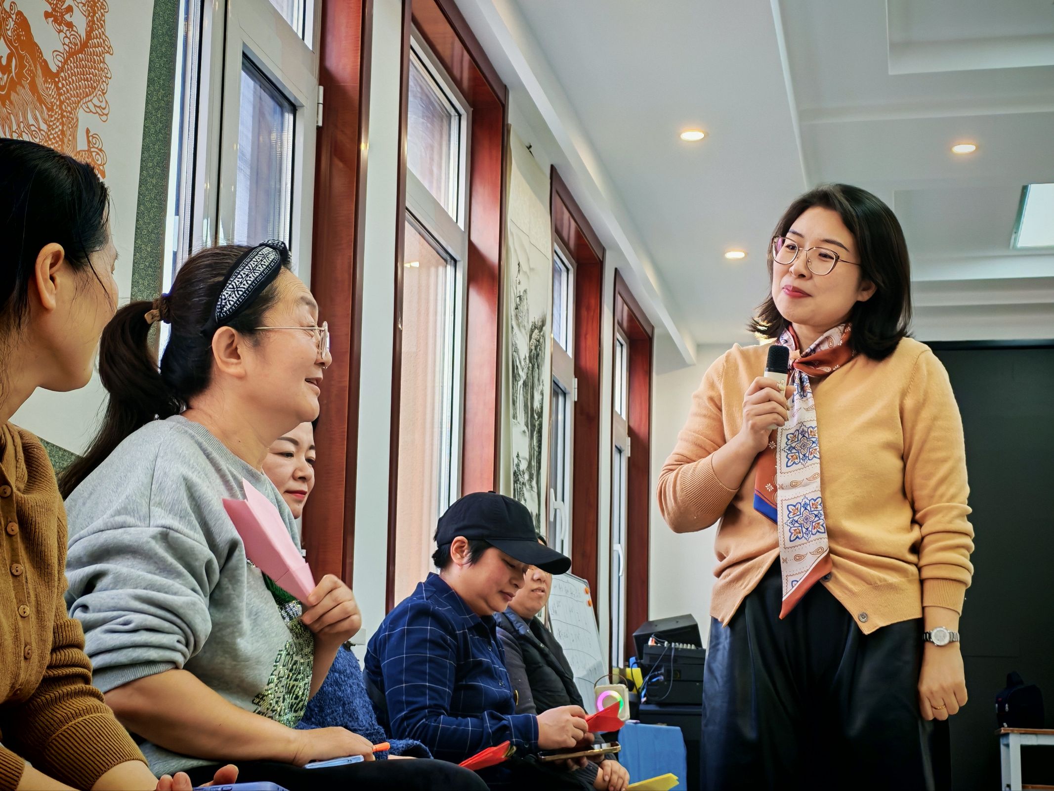 活动现场,学院师生的参与成为一大亮点。在西山小剧场的“感恩奋进·双争有我”惠民演出中,隗雯轩同学以一曲《如愿》传递深情,建筑与设计系七位同学的手语舞《感恩的心》更是用无声的语言打动全场;在居民游戏区,大学生心理健康协会设置的“杯子听奏”互动摊位前排起长队,居民们通过敲击杯子体验节奏乐趣,现场笑声不断;与此同时,学生工作处心理健康教育与指导中心主任胡铂在西山社区心灵驿站主持“释放压力,快乐同行”心理解压团体辅导,通过专业引导帮助辖区职工与居民疏解情绪,搭建起相互支持的心理交流平台。