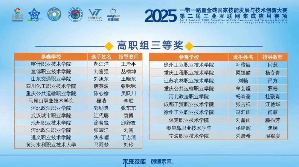 我院师生在2025一带一路暨金砖国家技能发展与技术创新大赛之第二届工业互联网集成应用赛项决赛中喜获佳绩
