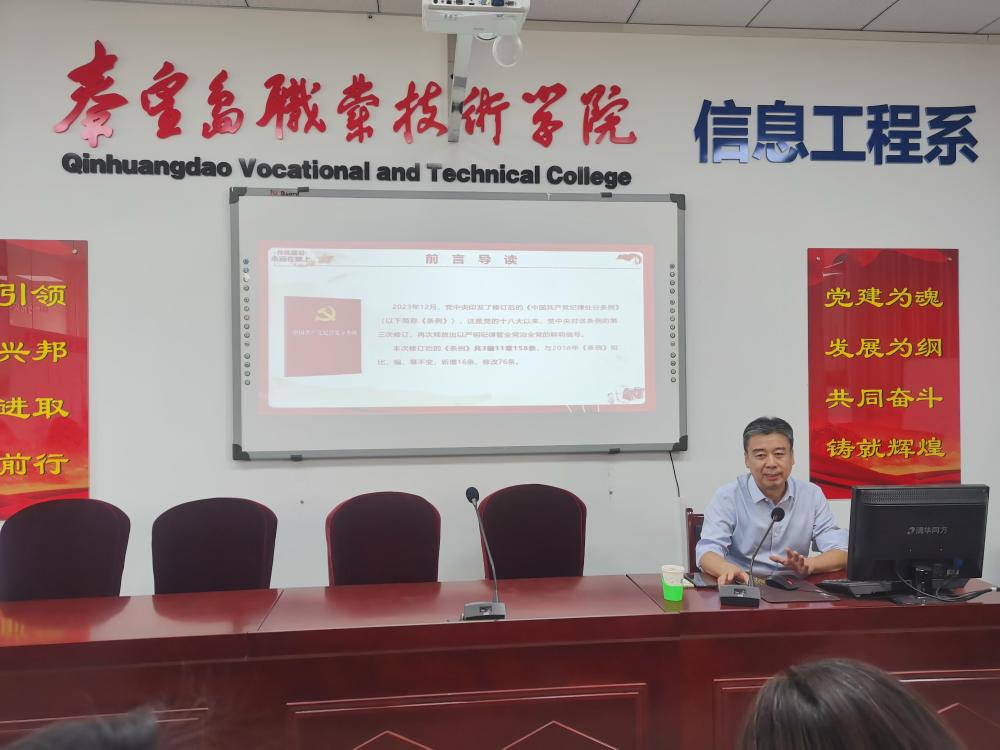 党委书记、院长蔡大勇为信息工程系和基础部的党员教师讲授党纪学习教育专题党课